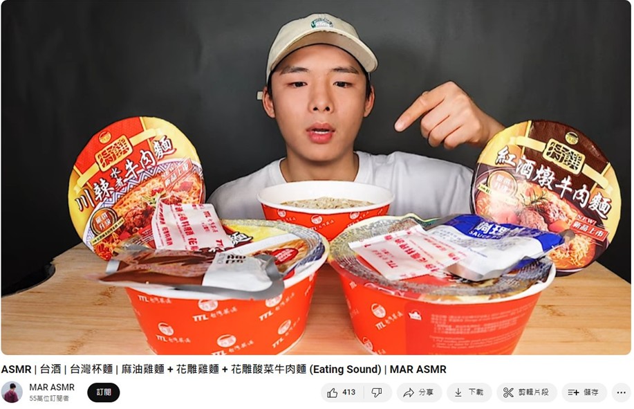 TTL instant noodle products are renowned globally for their rich broth, chewy noodles, and distinctive wine-infused ingredients. MAR ASMR, with its unique mukbang style, has gained a substantial following within the YOUTUBE community. This collaboration not only aims to introduce the product to a broader audience but also marks Tai Ting’s significant foray into the subcultural domain.