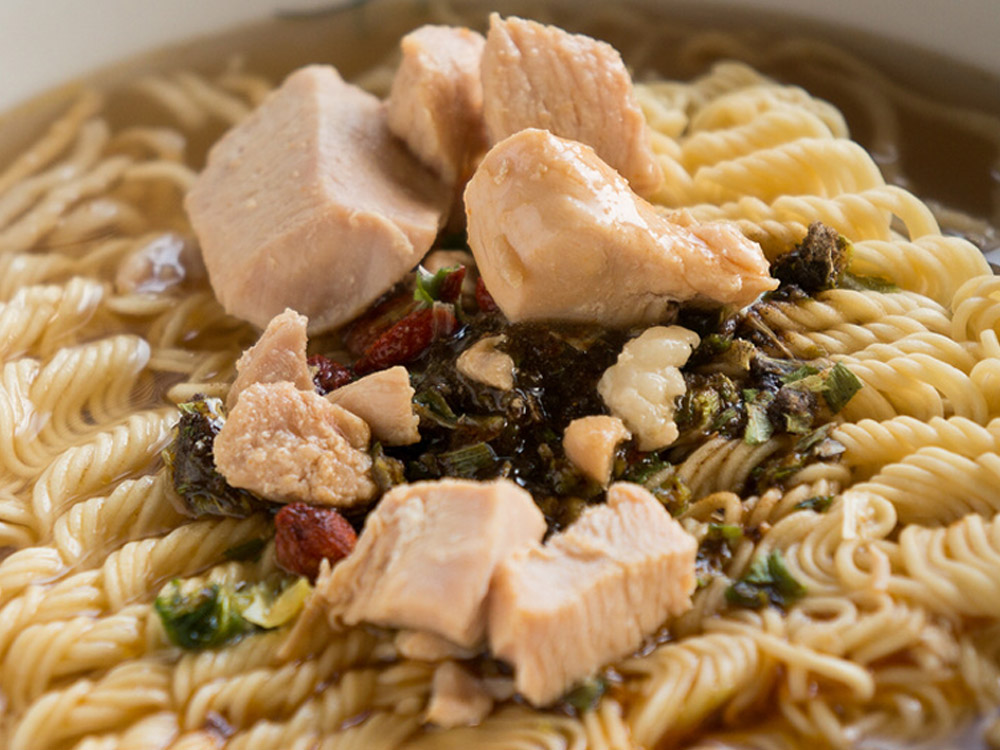 Just pour in hot water and enjoy the perfect Hua Diao Chicken Noodles in 3 minutes!